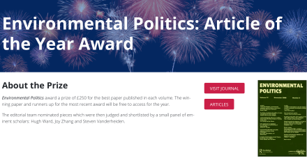 Many congratulations to the winner and the runner-ups of the 2020 Article of the Year Award for Environmental Politics !! It was enjoyable working with Hugh and Steven and reading through all the papers long listed by the editors. While we unanimously agree that Professor Robyn Eckersley’s paper is conceptually most impactful, it is safe … Continue reading