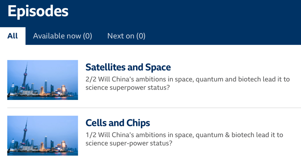 At the end of August, BBC Radio 4 launched a 2-episode programme on China’s science. Wohoo! I was so happy to see (or rather hear) it being broadcasted, for its editor Melanie Brown first got in touch with me about this idea in the summer of 2019. The original idea was to conduct interviews and site visits in China. That would have presented the audience with a more comprehensive and easier to relate view of the Chinese scientific community. A much needed programme for so many different reasons.